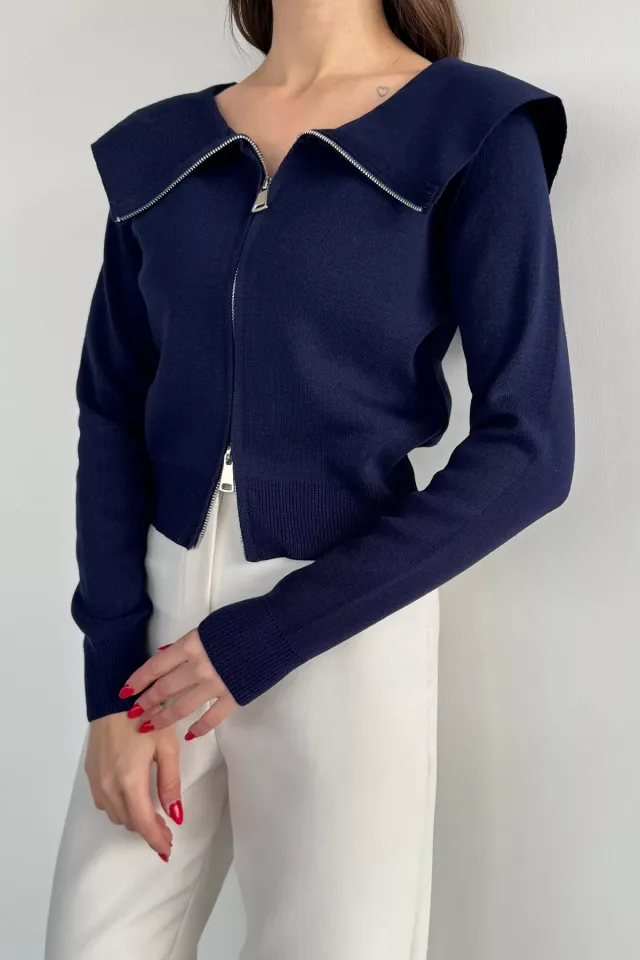 بلوزة قصيرة بأكمام طويلة وتفاصيل زر للنساء