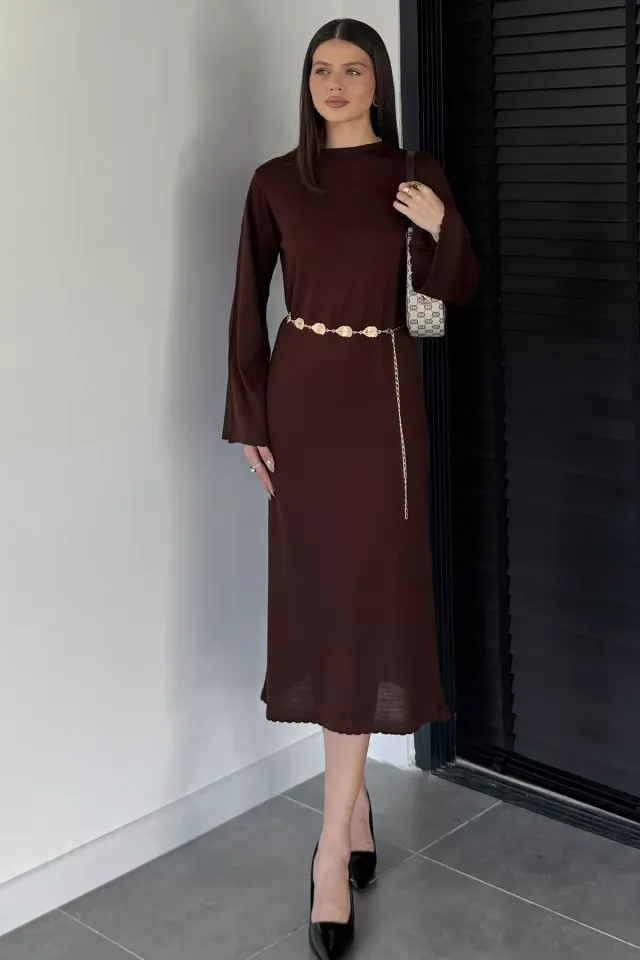 فستان نسائي متوسط ​​الطول بدون حمالات بتفاصيل طيات