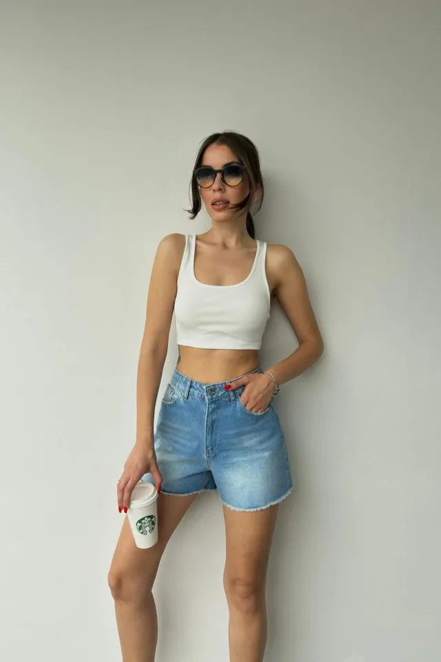 شورت جينز بجيب مزدوج عملي، مثالي لإطلالة صيفية كاجوال متعددة الاستخدامات.