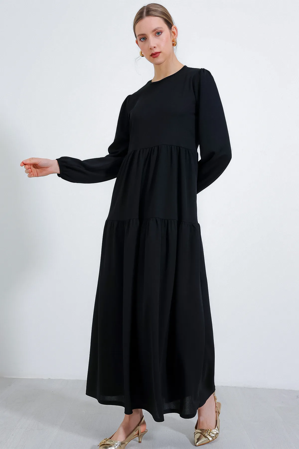- نوع الأكمام : أكمام واسعة مزمومة من الاسفل