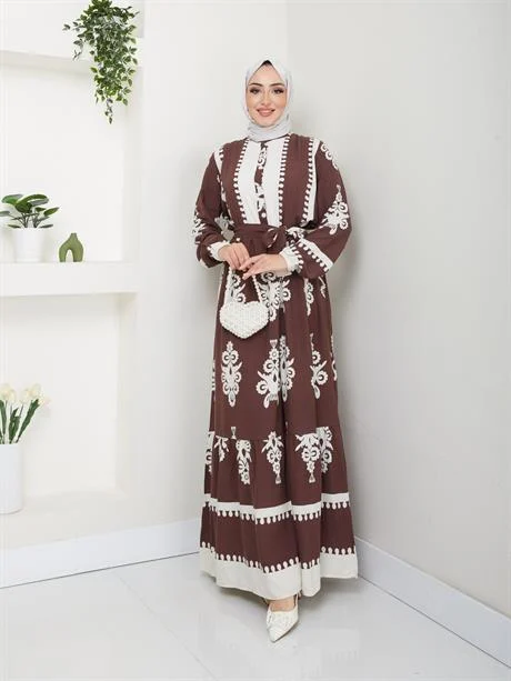 فستان ماكسي منقوش متعدد الطبقات بأكمام طويلة للنساء - Beyond Store