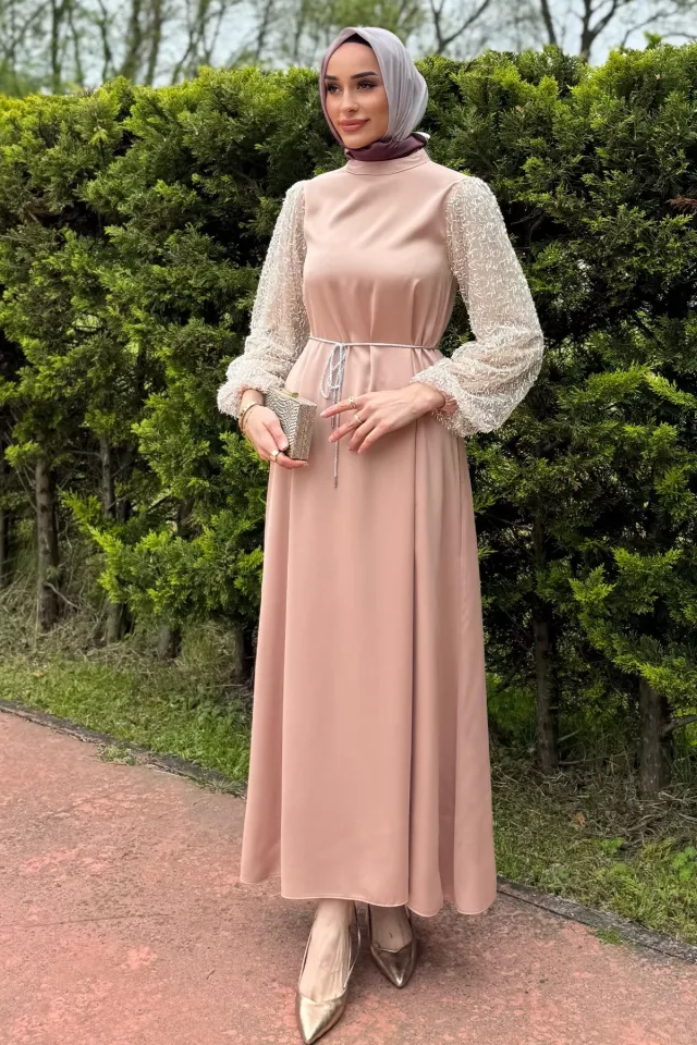 • نوع الأكمام : أكمام واسعة مزمومة من الاسفل