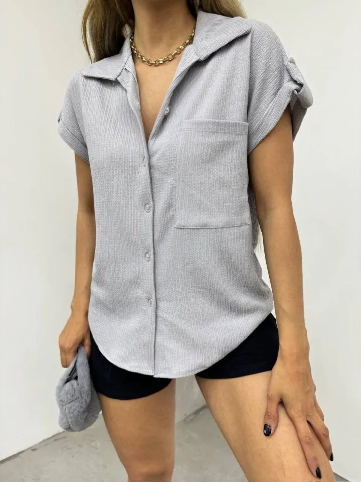 قميص نسائي مجعد بأكمام طويلة وأزرار أمامية، مصنوع من قماش خفيف الوزن وناعم مثالي للارتداء اليومي الأنيق والمريح.