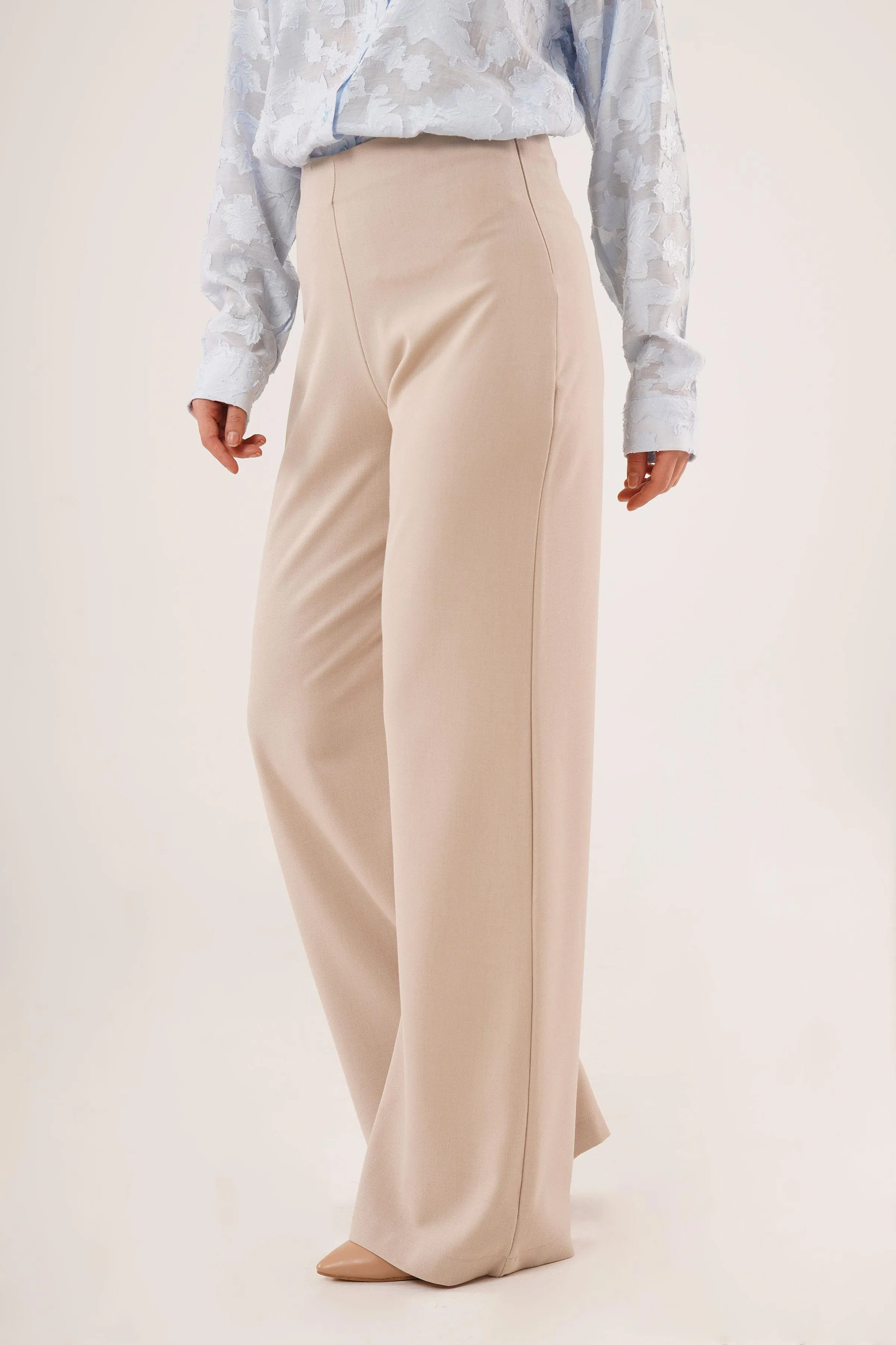 بنطلون قماش ضيق بخصر عالٍ وسحاب، مثالي لإطلالات صيفية أنيقة ومتعددة الاستخدام.