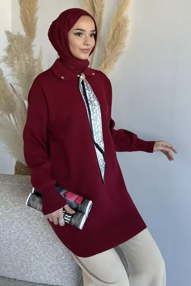 تونيك محتشم طويل بياقة بيتر بان وتفاصيل أزرار بلمسة أنثوية هادئة