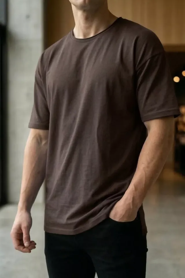 تيشيرت رجالي بطبعة وياقة دائرية بملمس قطني مريح للصيف - Beyond Store