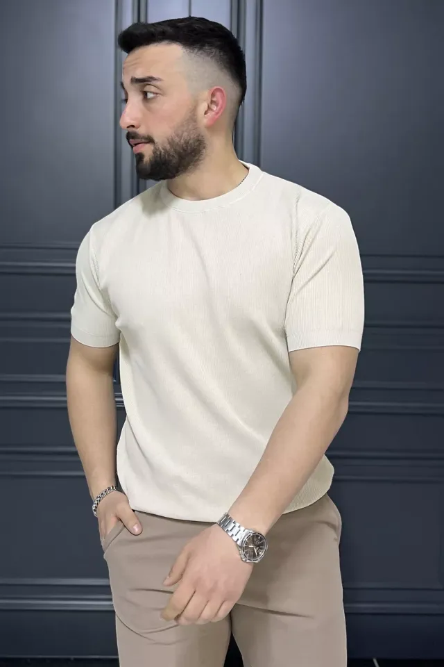 تيشيرت بولو رجالي محبوك بنقشة خطوط بدون أزرار بستايل أنيق وخفيف - Beyond Store
