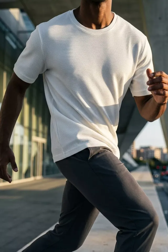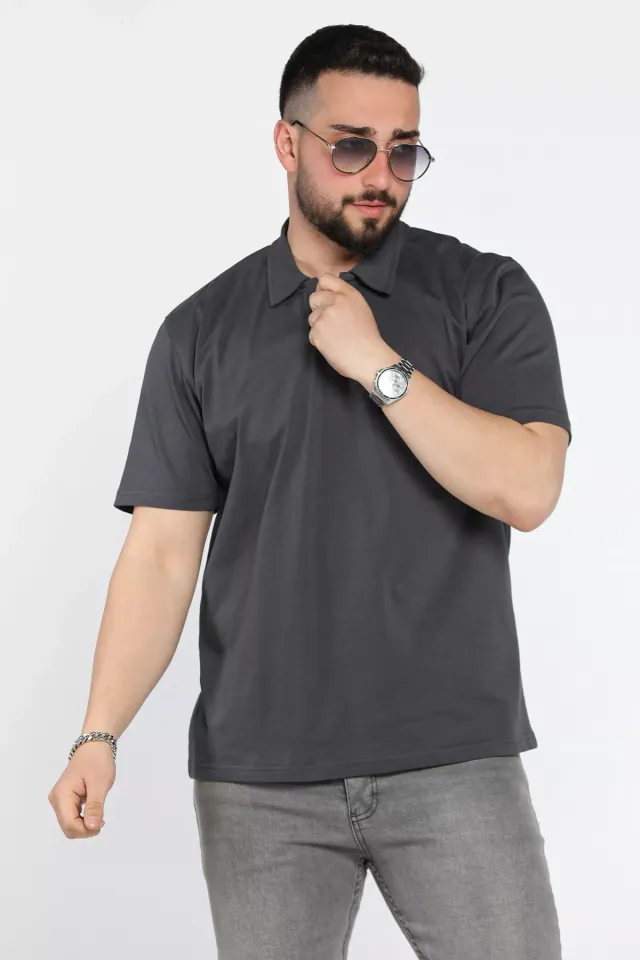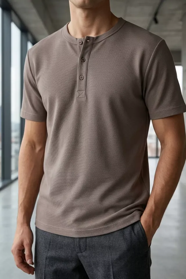 تيشيرت بولو رجالي محبوك بنقشة خطوط خفيفة ولمسة ناعمة بدون أزرار لإطلالة صيفية مرتبة