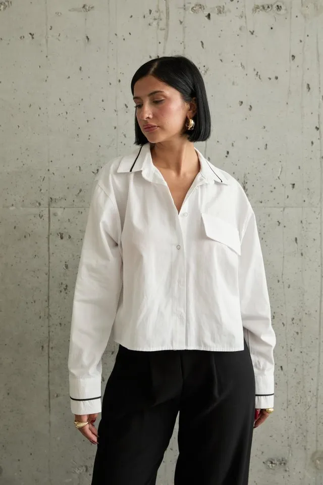 قميص قطني واسع موحد اللون بأكمام طويلة وأزرار أمامية، مثالي لتنسيقات صيفية مريحة وعملية.