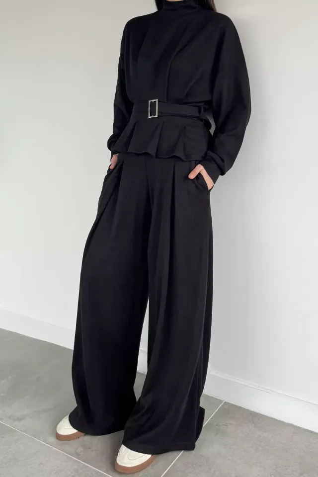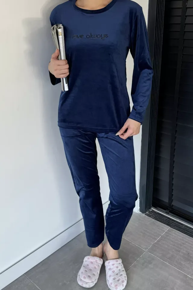 طقم قطني مزين بعبارة مطرزة من تيشيرت وبنطلون واسع للنساء - Beyond Store