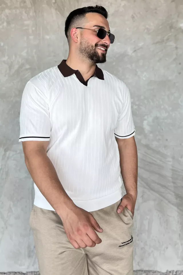 تيشيرت رجالي محبوك بياقة دائرية وتفصيل خطوط ناعمة بلمسة صيفية خفيفة