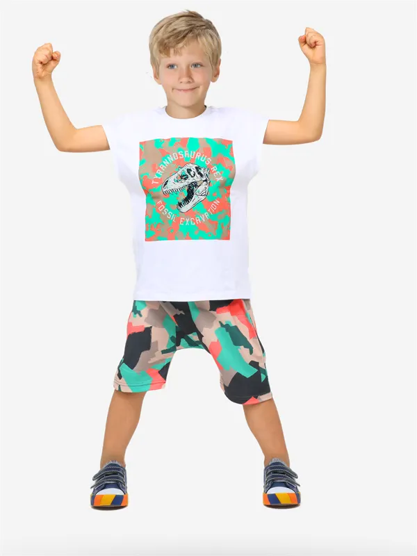طقم تيشيرت مطبوع بأكمام قصيرة و شورت للأولاد - Beyond Store