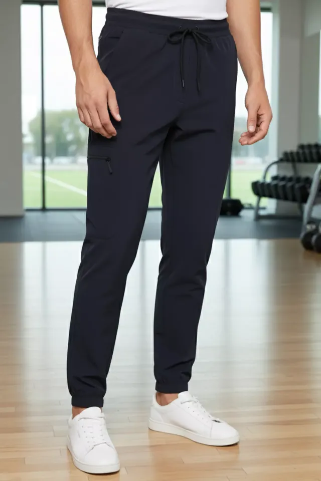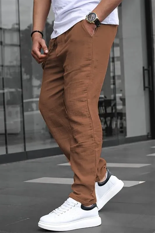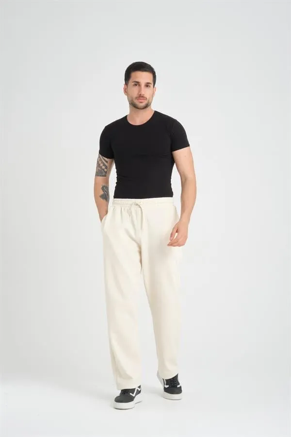 بنطلون رجالي بقصة مستقية سادة مع خصر مرن وأزرار - Beyond Store