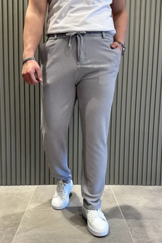 بنطلون رجالي سادة بقصّة مستقيمة وخصر مرن وأزرار، مصنوع من 33% فيسكوز، 63% بوليستر، و4% لايكرا. قماش مريح ومتين، مناسب للارتداء اليومي. قابل للغسل في الغسالة على درجة حرارة 30 درجة مئوية لسهولة العناية.
