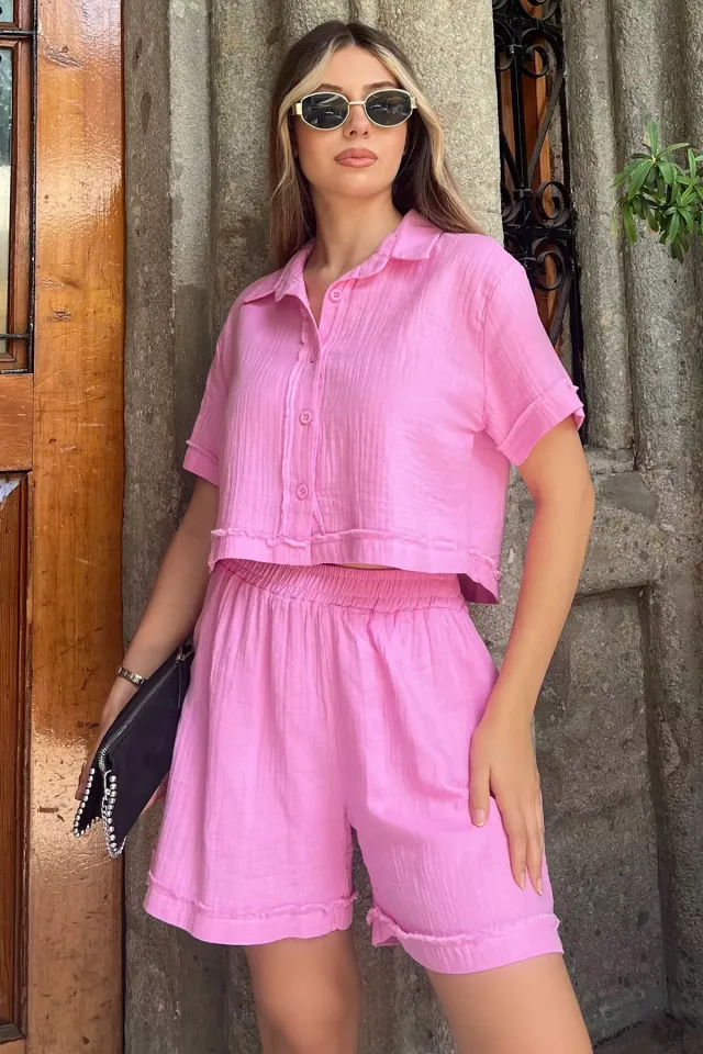 شورت موسلين فضفاض بخصر مرتفع وقصة مريحة، خفيف ومنعش لأيام الصيف الكاجوال.
