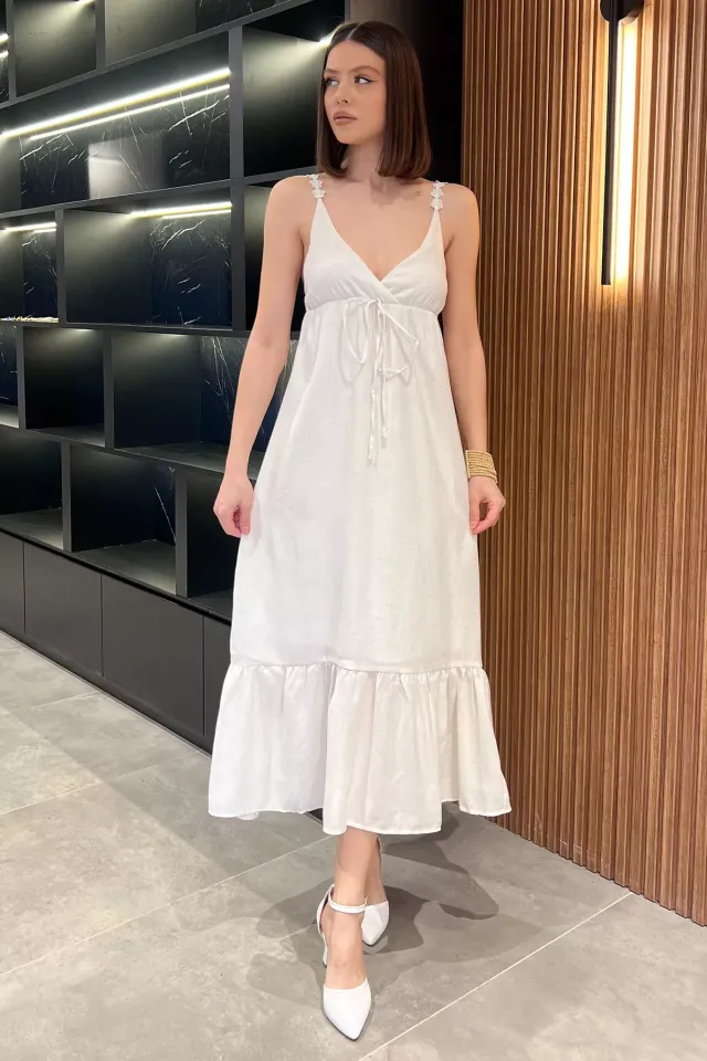 فستان ميدي ضيق بحمالات رفيعة وياقة مربعة مع تفاصيل بكسرات للنساء - Beyond Store