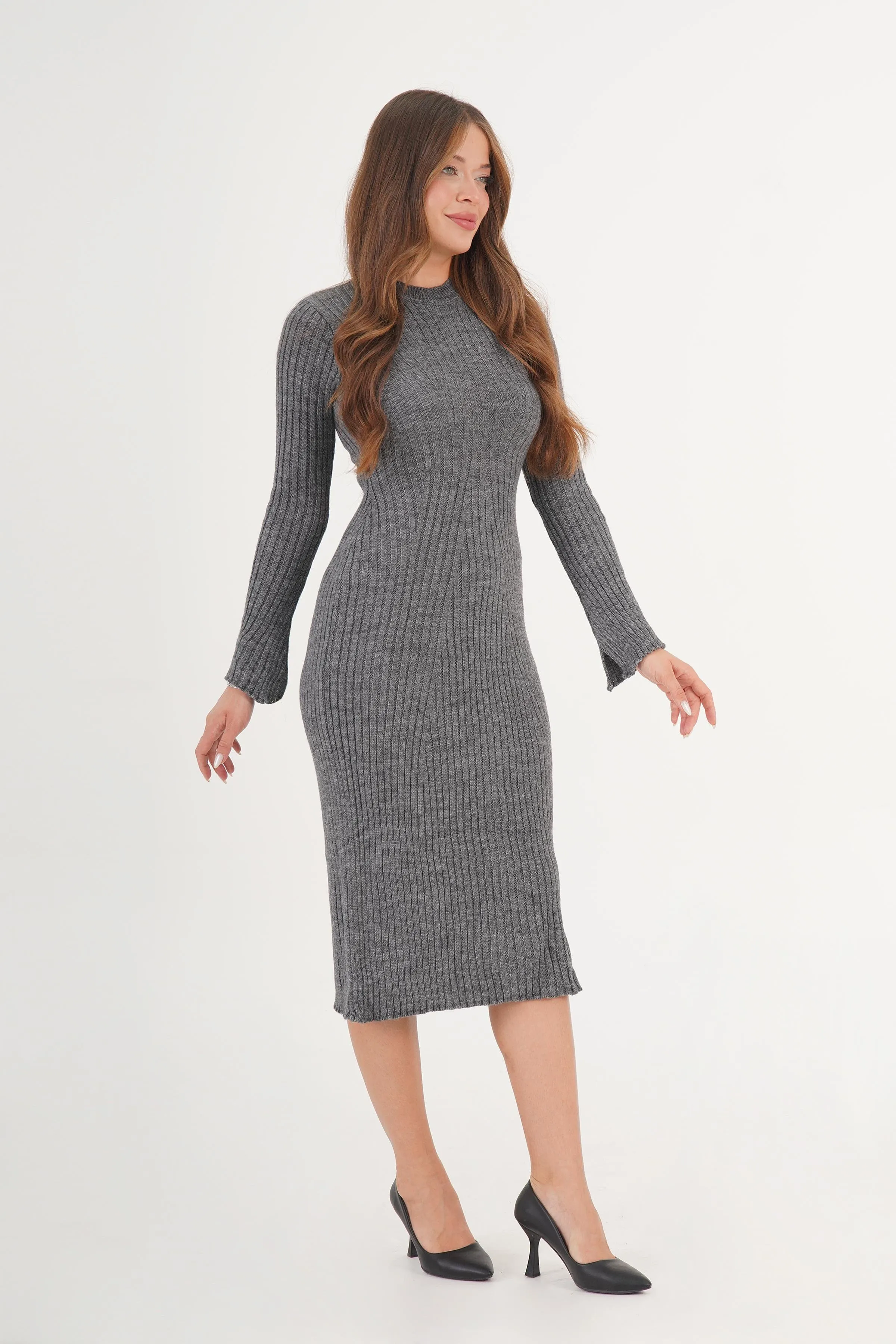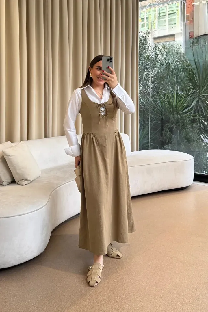 فستان مجعد بقصة A وياقة دائرية بدون أكمام للنساء - Beyond Store