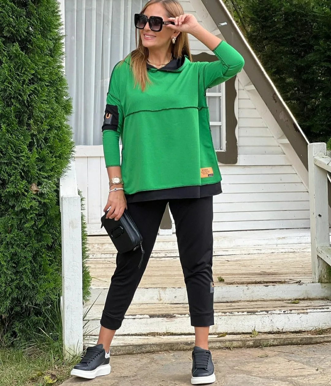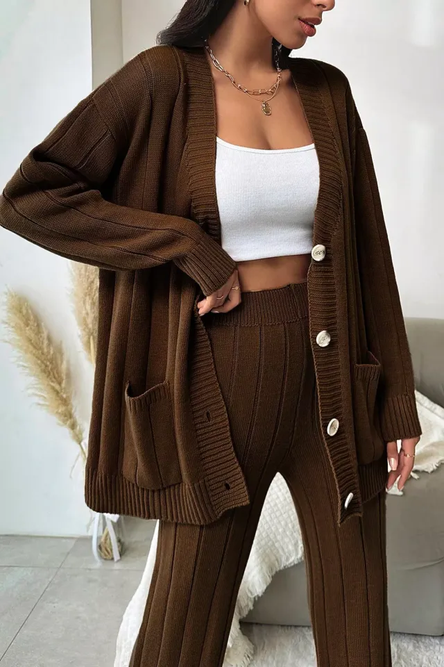 طقم توب رملية بدون درز بأكمام ترفاكار وبنطلون منقوش بخصر مرتفع - Beyond Store