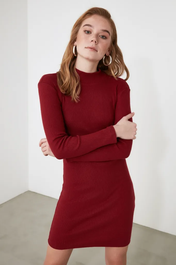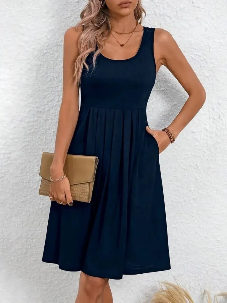 فستان نسائي ميني فيسكوز بياقة دائرية مع أكمام قصيرة وشق جانبي