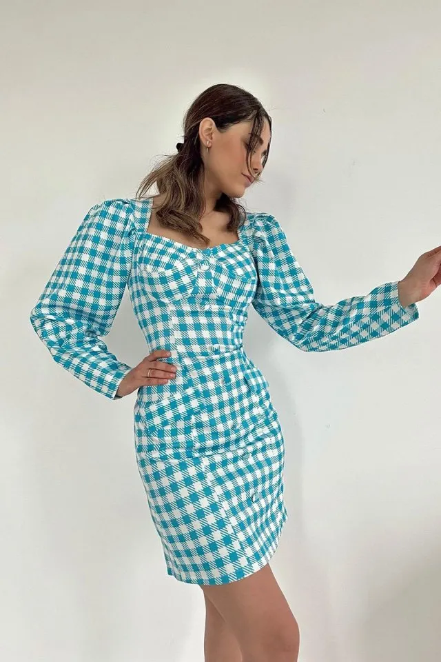 فستان ميني كلوش مشجر بياقة دائرية مع رباط خصر، إطلالة كيوت وعملية للنساء.