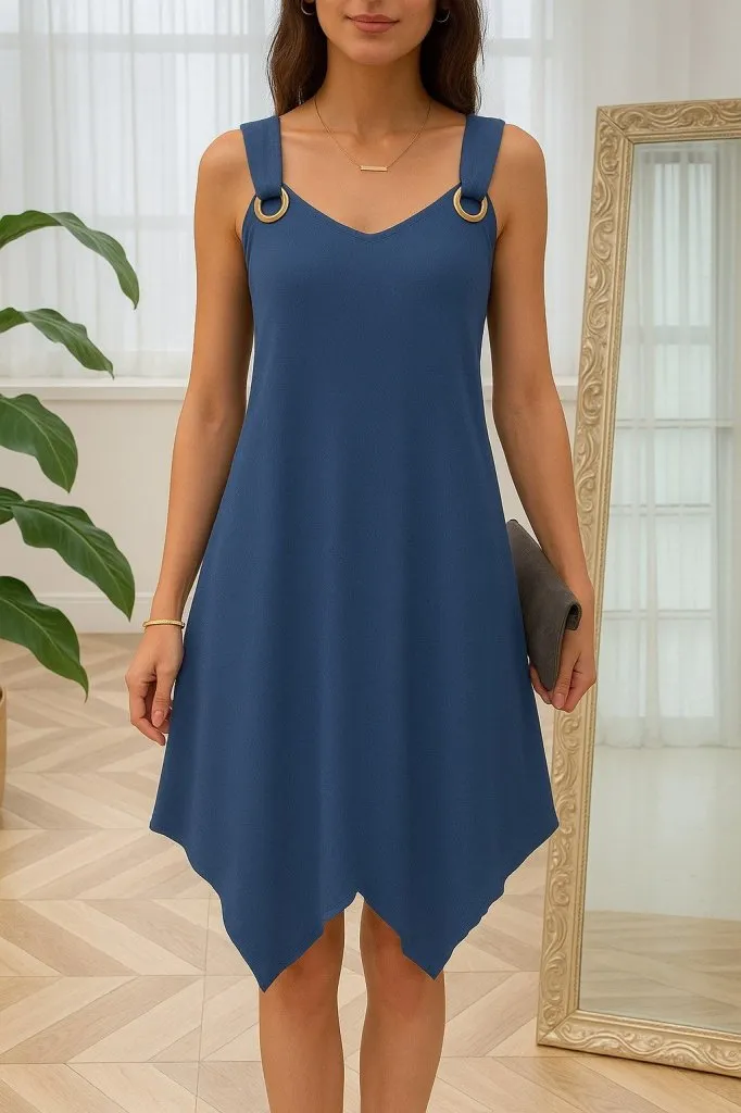 فستان كلوش مخرم بياقة قائمة وأكمام قصيرة مع كشكش وأزرار أمامية، إطلالة كيوت وخفيفة للصيف.