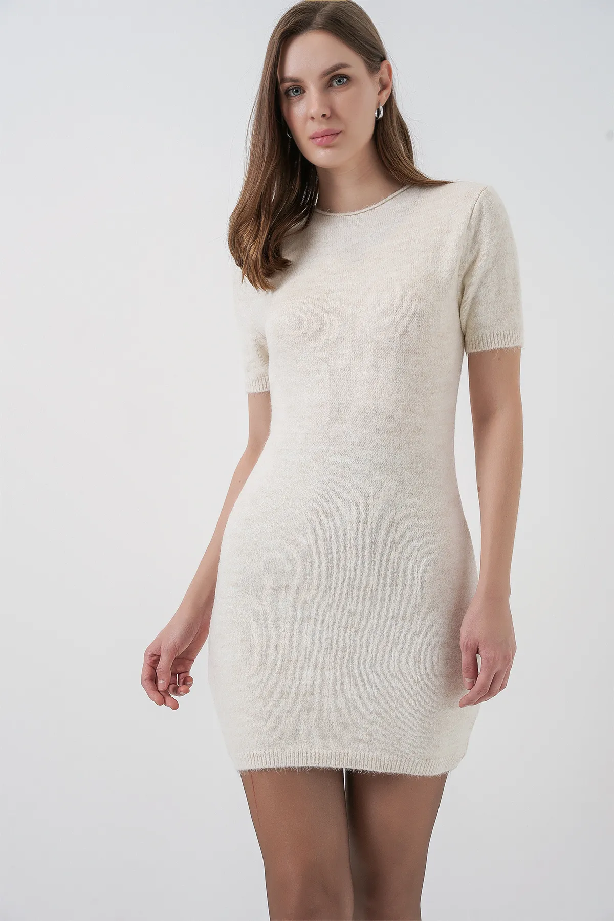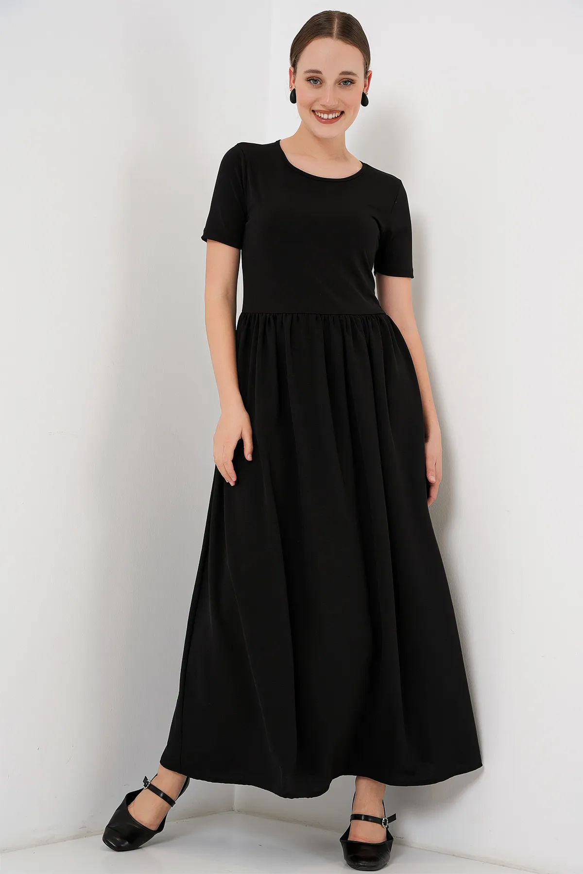 فستان نسائي كلوش مخرم بياقة قائمة مع كشكش وأزرار أمامية - Beyond Store