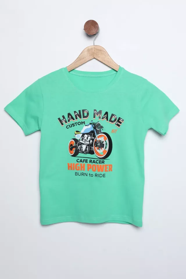 تي شيرت مطبوع بأكمام عادية و ياقة دائرية للأولاد