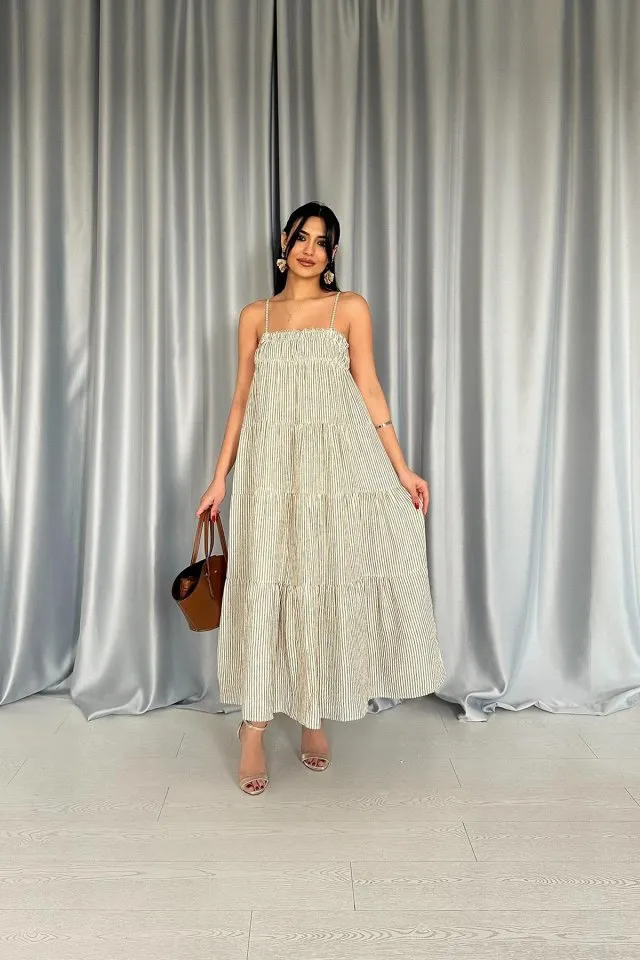 فستان ميني كريب بحمالات رفيعة وتفصيل كسرات وياقة على شكل قلب. تصميم كيوت وجذاب للنساء مثالي لأيام الصيف الكاجوال.