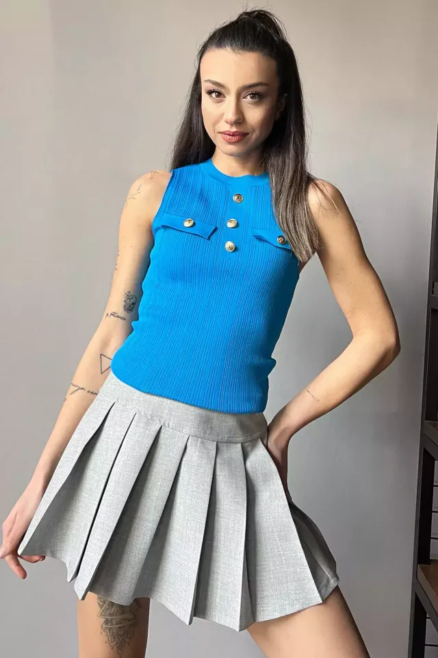 بلوزة محبوكة خفيفة بدون أكمام بياقة U مثالية للتنسيق مع إطلالات صيفية يومية