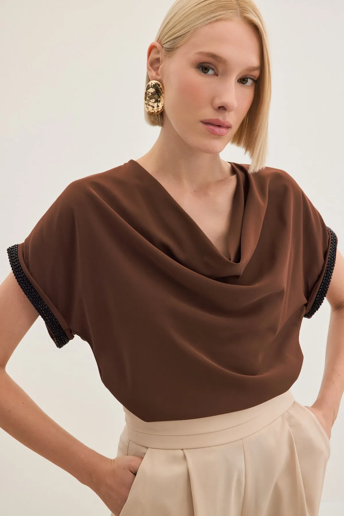بلوزة برقبة مربعة وتفاصيل كشكشة - Beyond Store