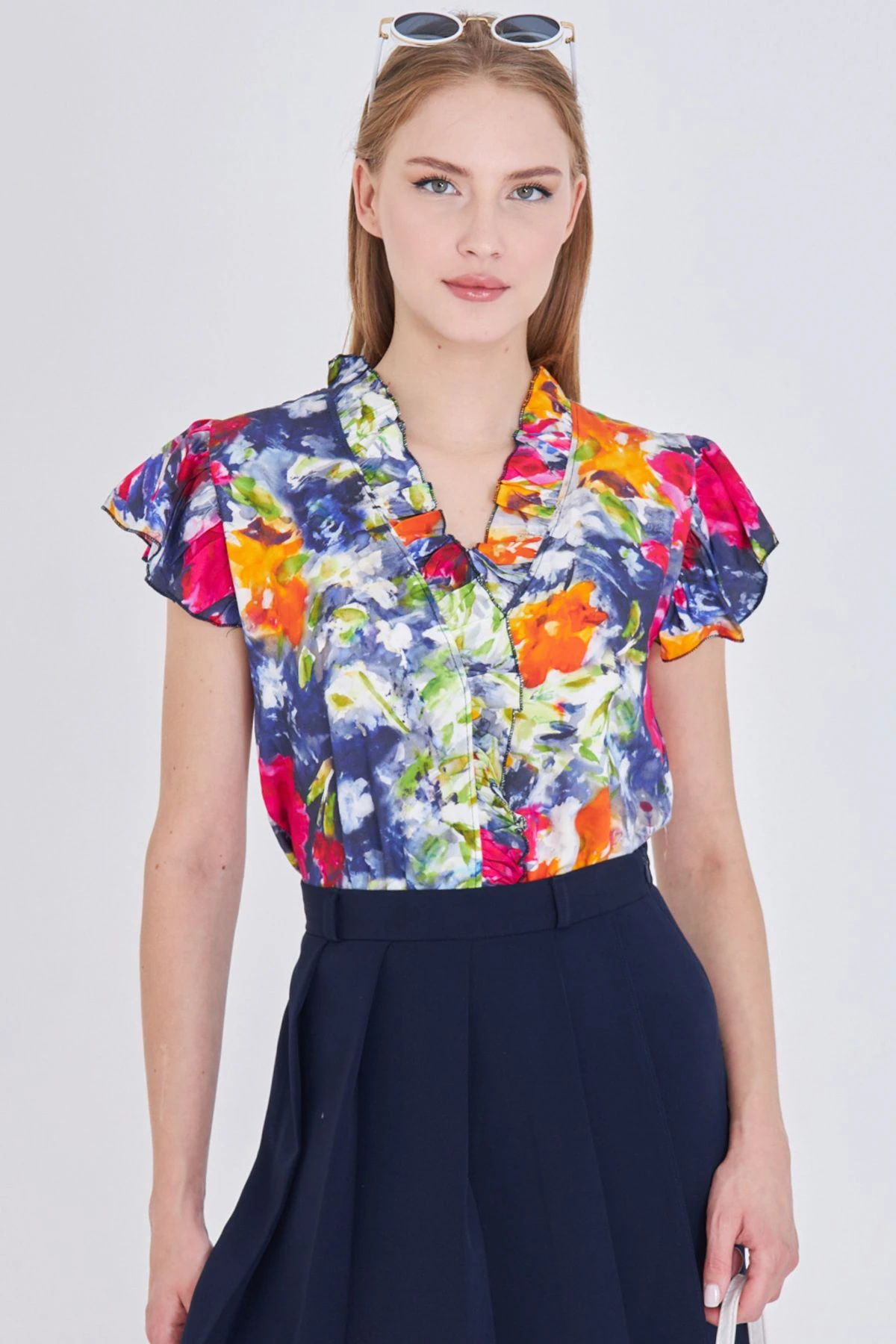 بلوزة برقبة مربعة وتفاصيل كشكشة