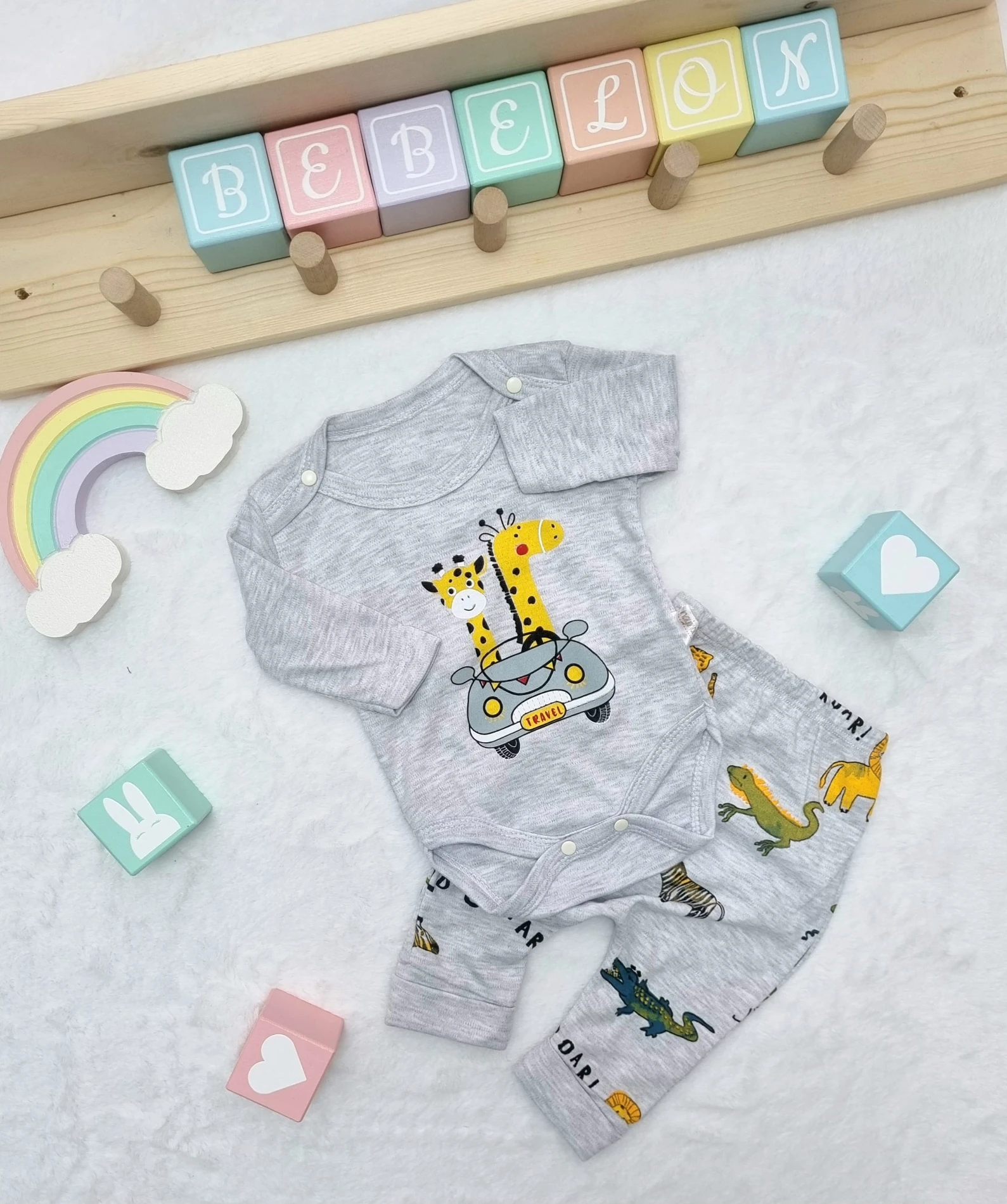 طقم بيجاما موسمي من 2 قطع للأطفال الرضع بطبعة ديناصور و زئير
