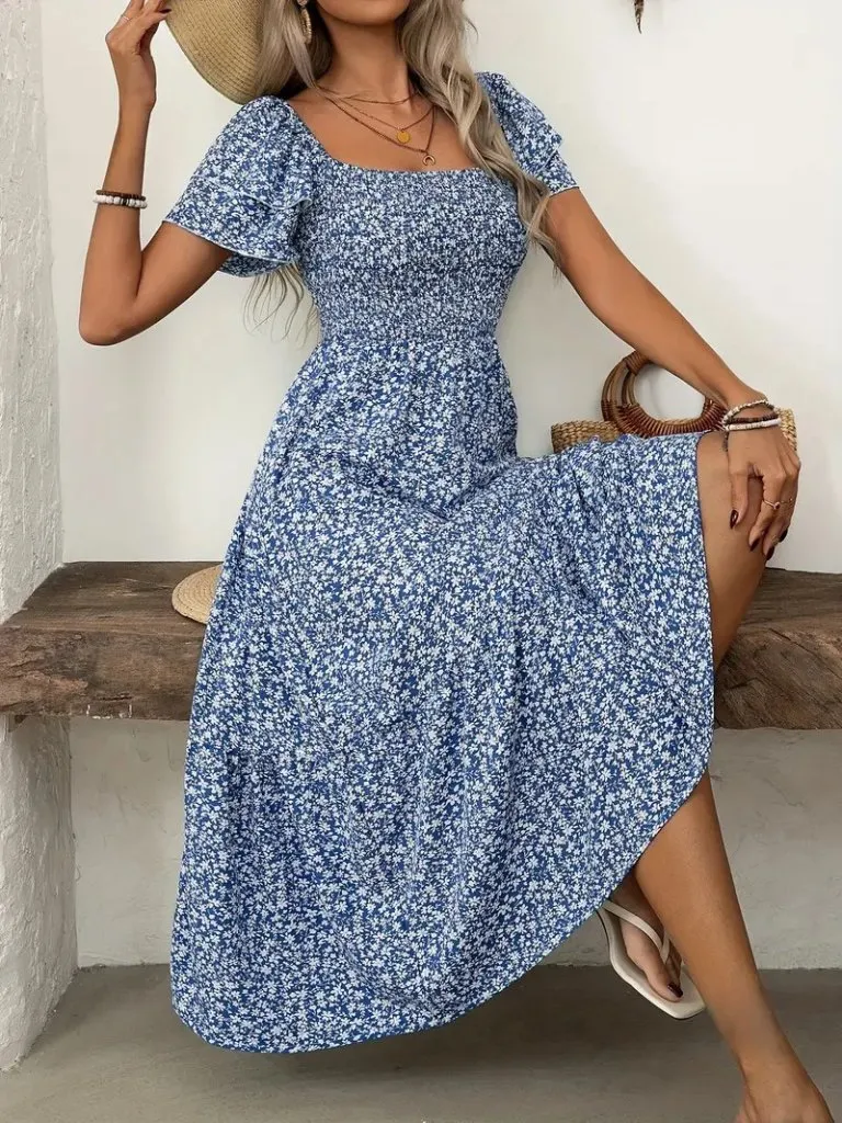 فستان قصير سادة بقصة كلوش وياقة بولو وأكمام قصيرة لإطلالة صيفية سهلة وعصرية للنساء