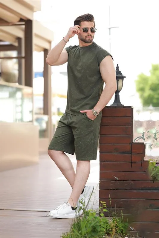 طقم رجالي بياقة قميص مضلعة وبنطال رياضي بقصّة مستقيمة، مصنوع من 90% بوليستر و10% إيلاستين. مصمم للراحة والمرونة بلمسة نهائية أنيقة. قابل للغسل في الغسالة على درجة حرارة 30 درجة مئوية لسهولة العناية.