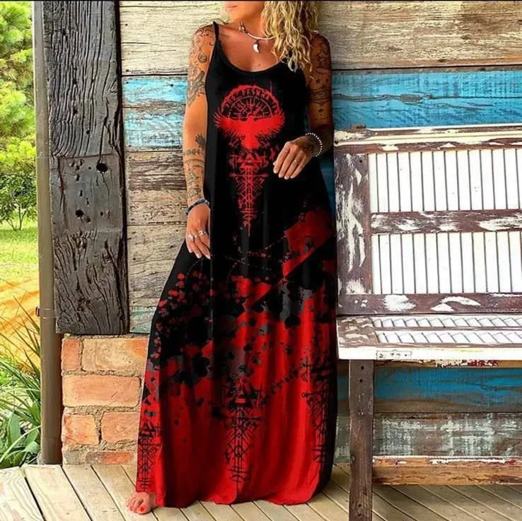 فستان ماكسي كلوش من الساتان بلون موحد بدون أكمام بتصميم مزدوج الصدر وصدر مقولب، لمظهر أنيق ومنعش للعطلات الصيفية والمناسبات المميزة.