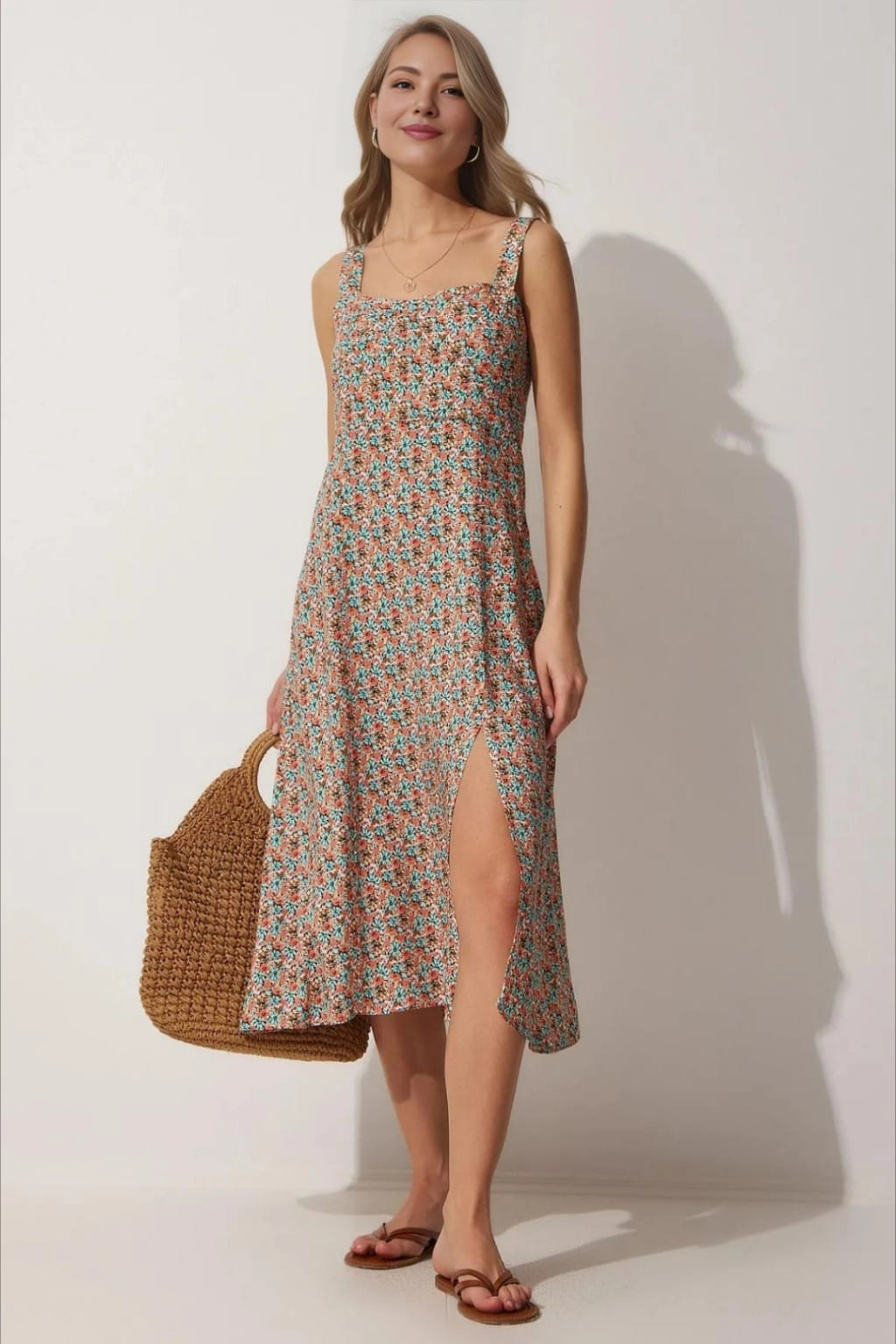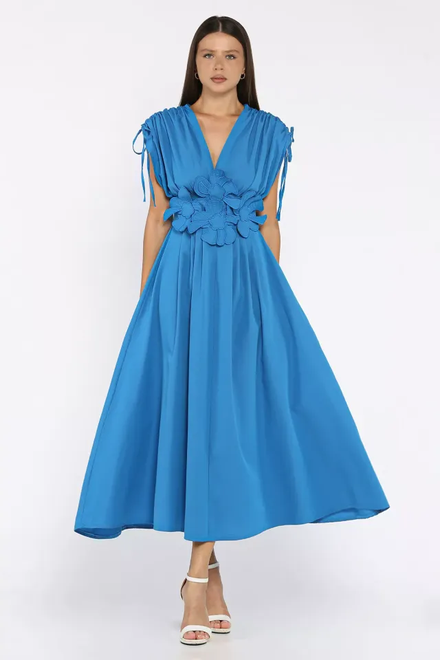 فستان قصير بقصة A شكل من فيسكوز بلون موحد بأكمام دانتيل وياقة دائرية وأكمام قصيرة، لإطلالة صيفية يومية أنيقة ومريحة.