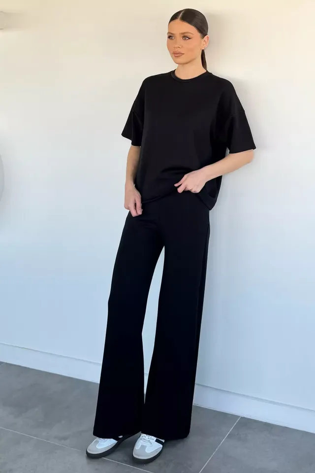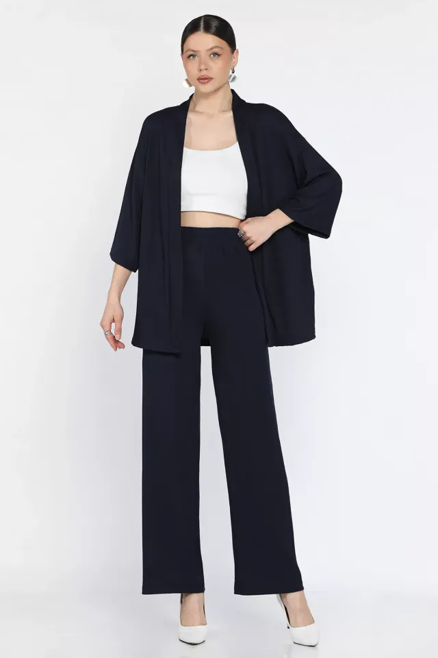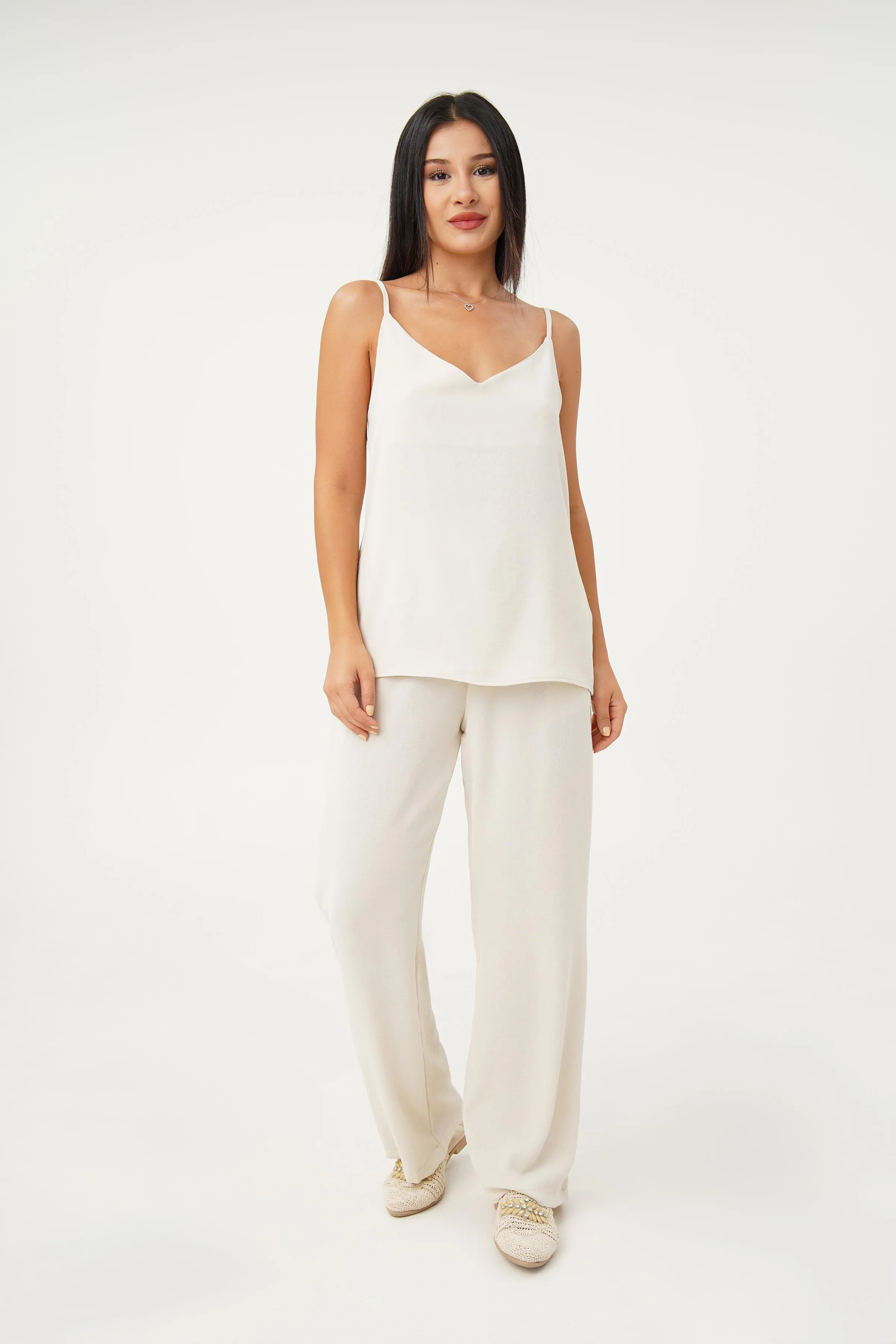 طقم طويل من الكتان بلون موحد مع فيست غير متماثل بدون أكمام بياقة دائرية وبنطلون بقصة عادية للنساء - Beyond Store