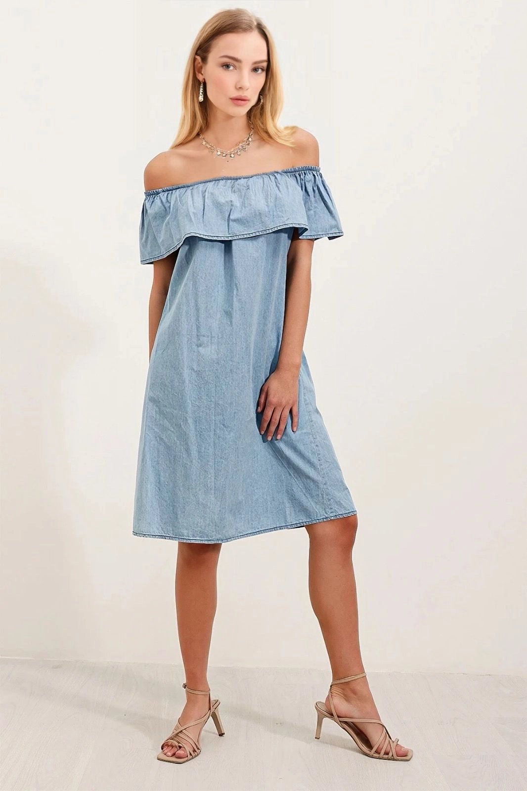 • نوع الياقة : مكشوف الكتفين