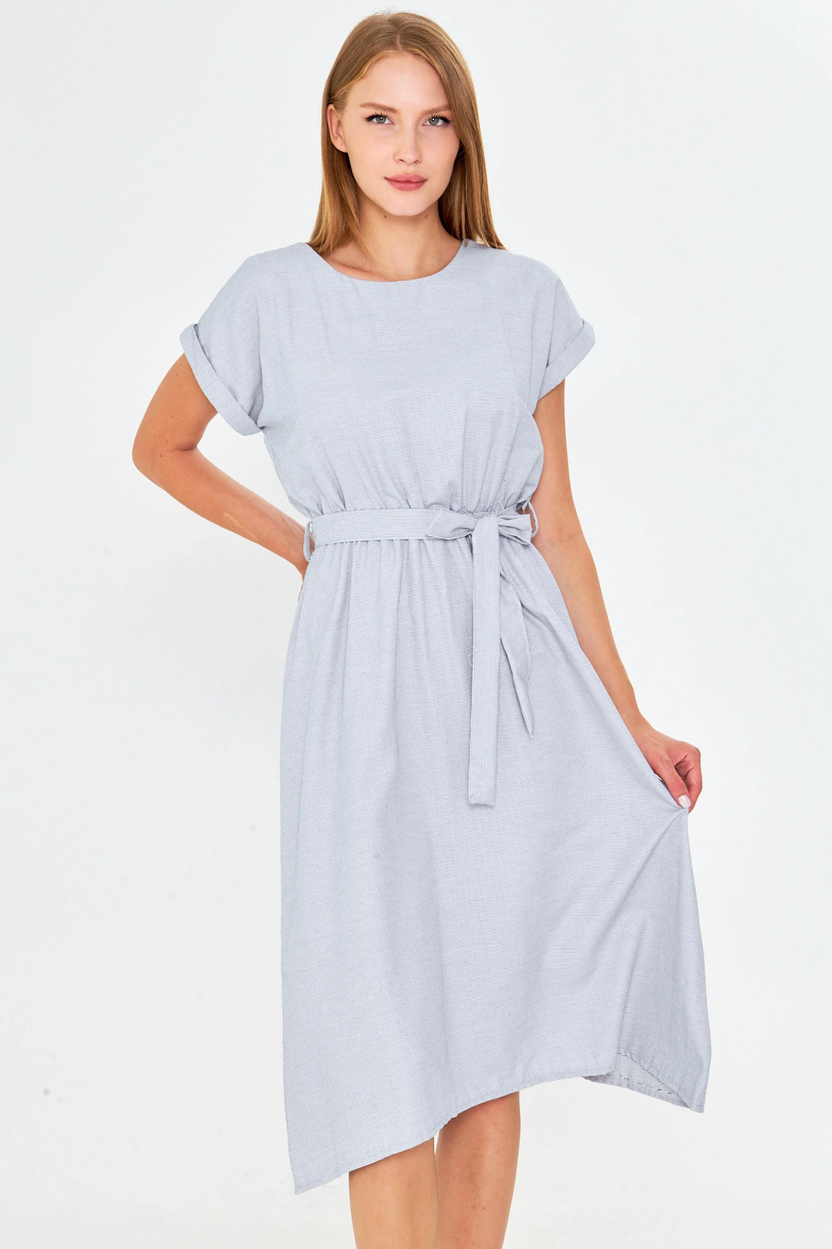 فستان طويل بطيات وياقة مربعة مع فتحة فخذ أنيقة مناسب للإطلالات الكاجوال والعطلات والسهرات