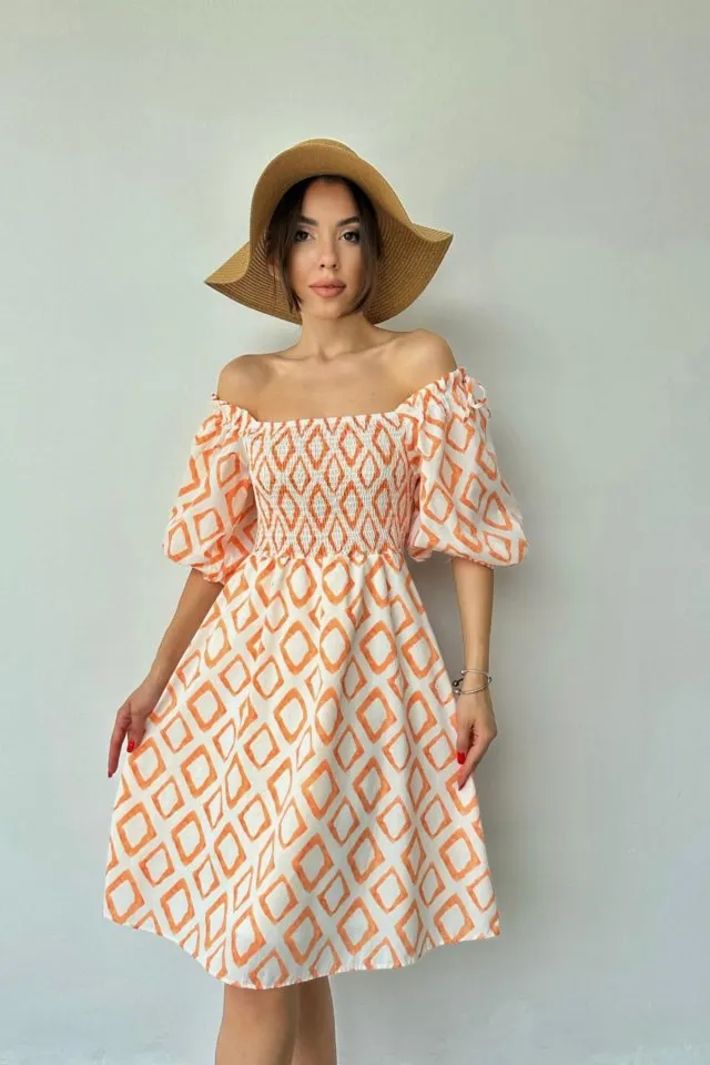فستان ميني بقصة A شكل من أيوروبين بخصر برباط وأكمام قصيرة وياقة دائرية للنساء