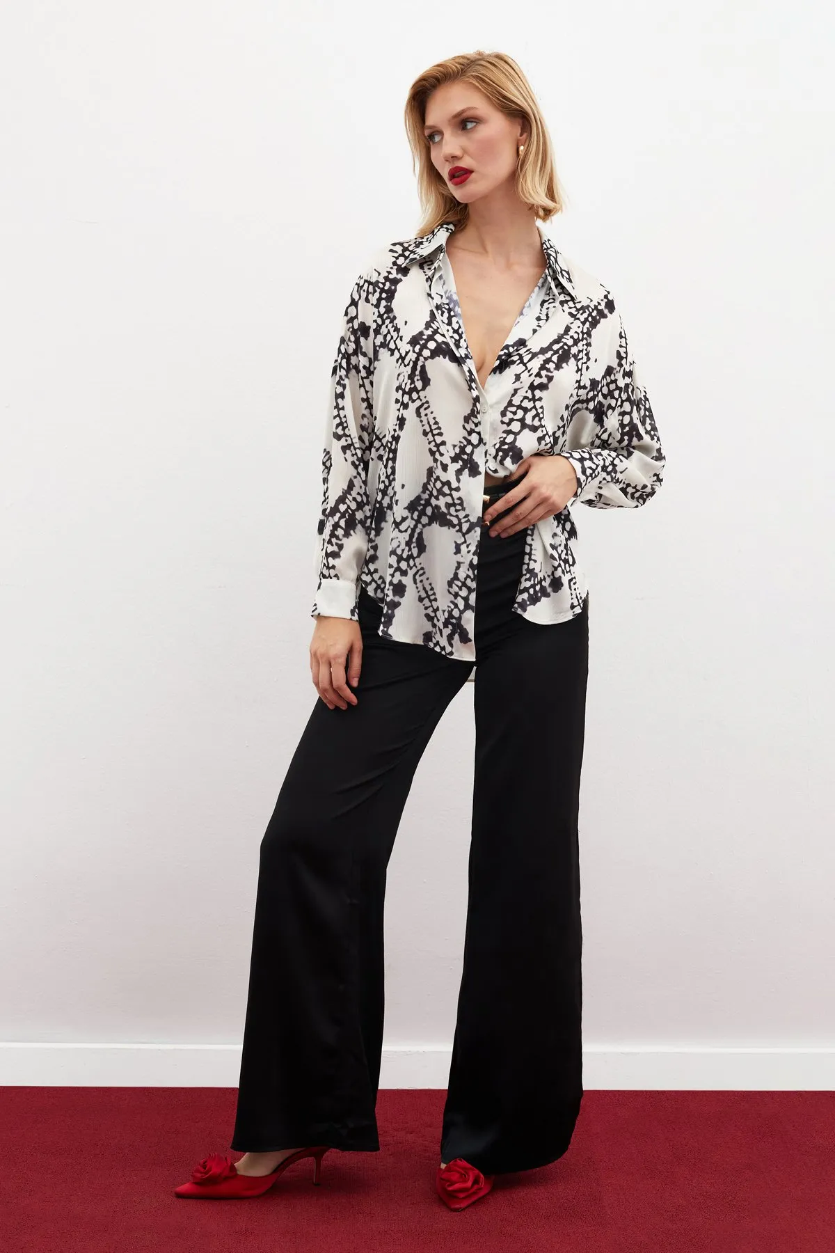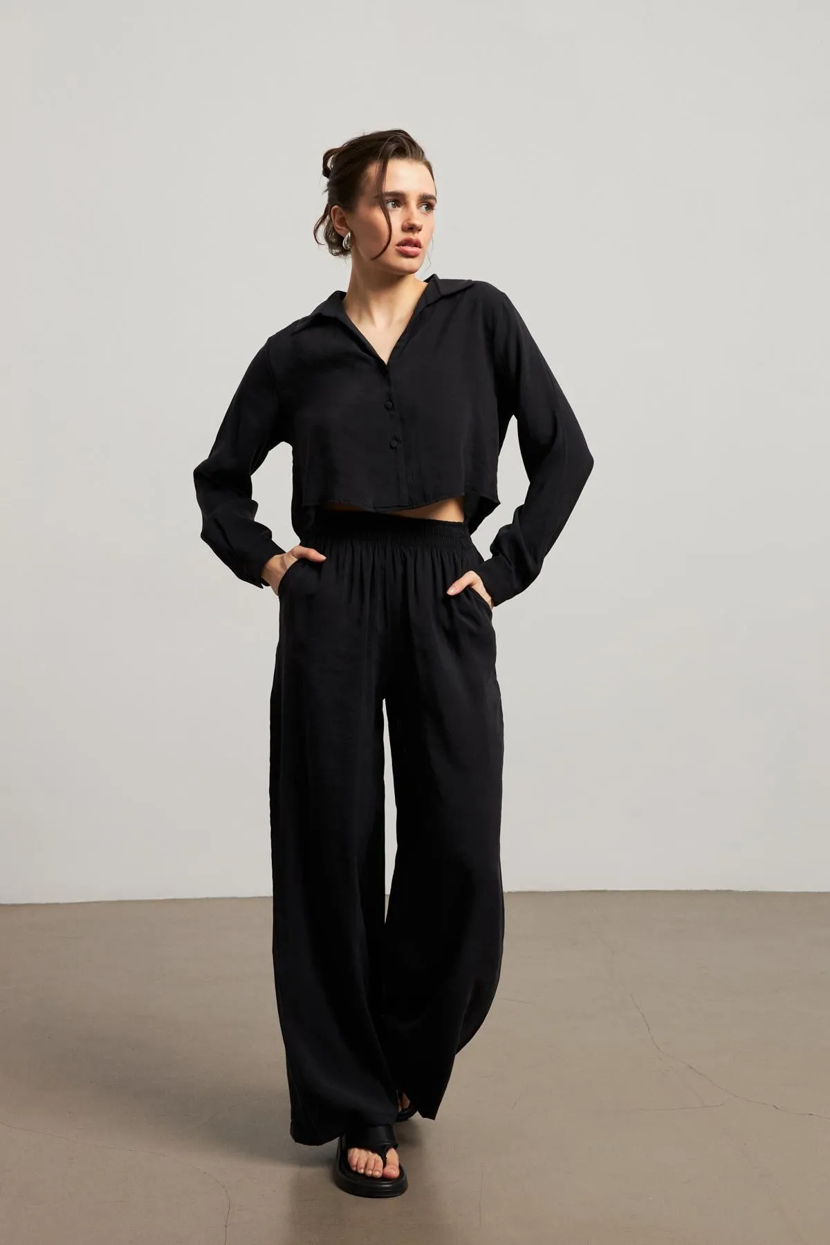 قميص نسائية بمظهر الكتان وأكمام قصيرة وجيب أمامي واحد وأزرار أمامية، قطعة أساسية عملية لإطلالة صيفية عصرية أو للعطلات.