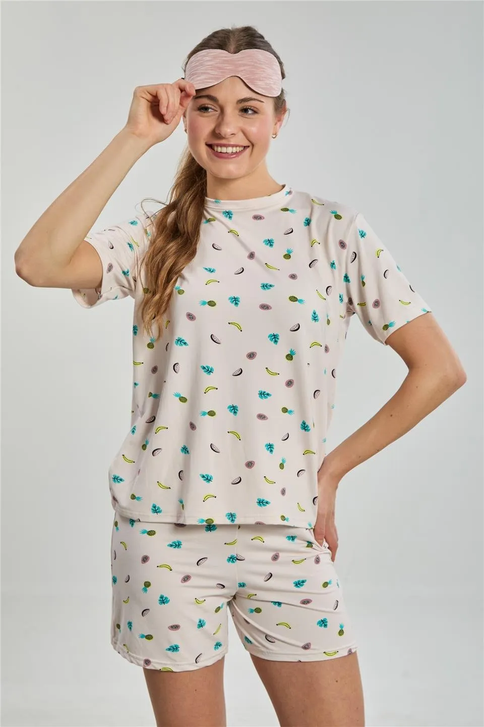 طقم نوم نسائي بنقشة منقوشة بياقة كلاسيكية وأكمام قصيرة، يوفر راحة ناعمة وتهوية جيدة. مثالي لليالي الحارة بإطلالة أنيقة وعملية.