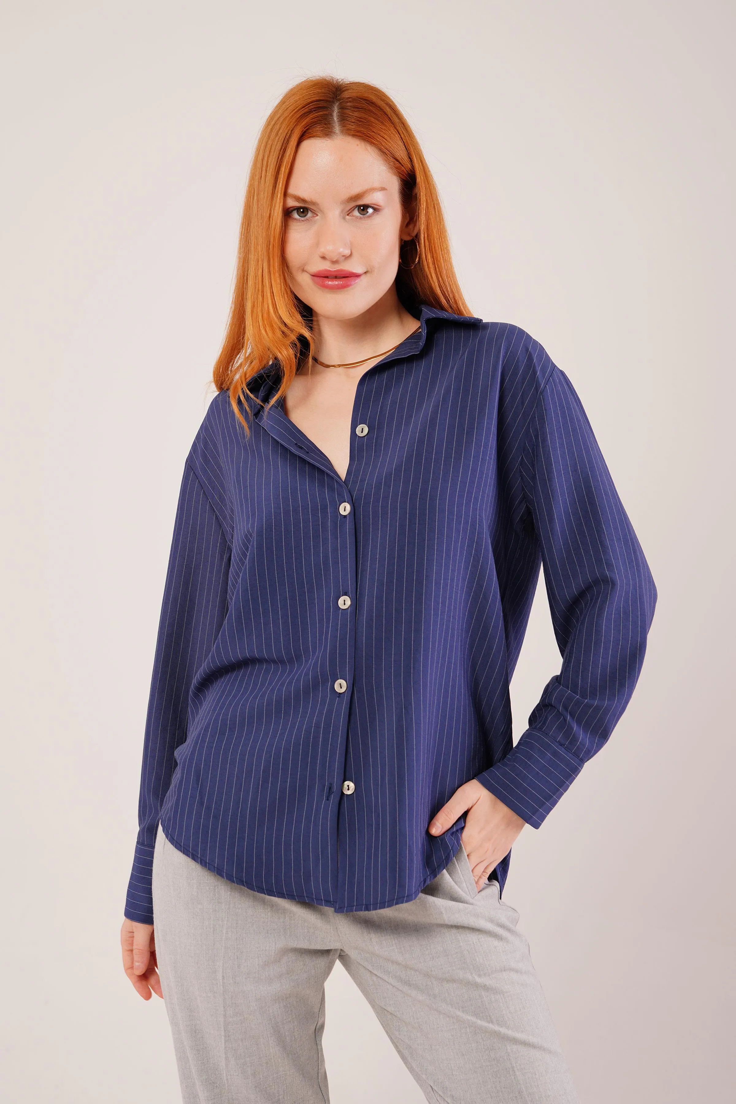قميص نسائية بقصة مريحة وياقة بربطة وأكمام بيشوب مطرزة وأساور مطاطية، لمسة أنيقة لإطلالة صيفية يومية.