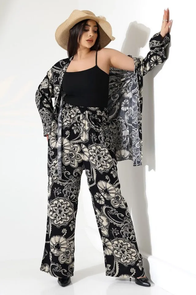 طقم بنطلون بياقة قميص مع جيبين ورباط خصر وخصر مرن للنساء - Beyond Store