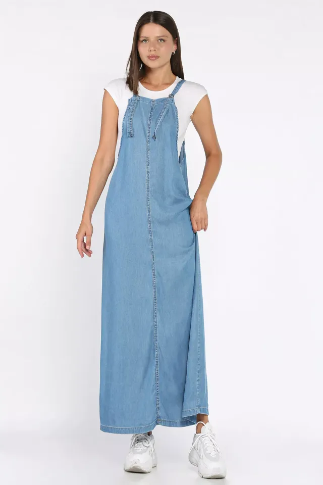 فستان ماكسي ضيق بدون أكمام بياقة الرسن وتفاصيل بكسرات