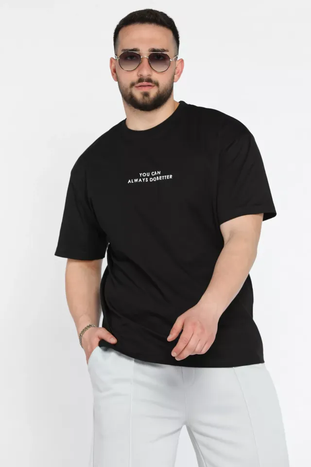 تي شيرت قطني بياقة دائرية وطبعة حروف للرجال - Beyond Store
