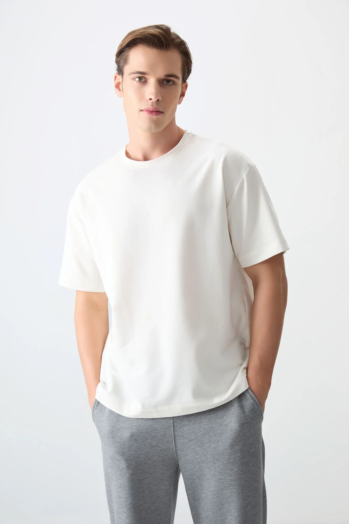 تي شيرت رجالي رياضي مطبوع بياقة دائرية - Beyond Store