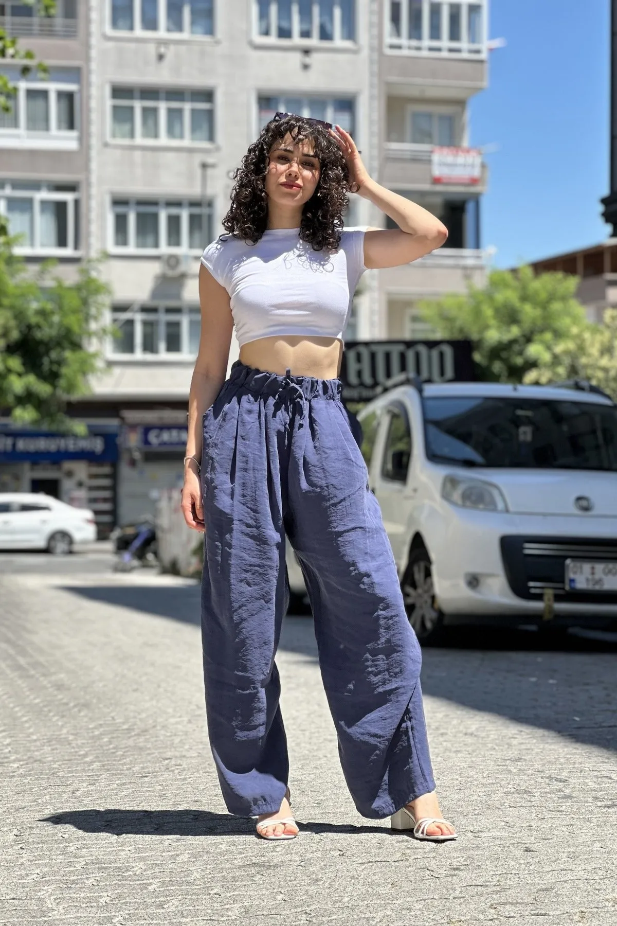بنطلون نسائي بنقشة الفهد بخصر مطاطي وقصة واسعة