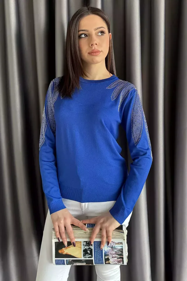 بلوزة محبوكة بأكمام طويلة وياقة دائرية، مصنوعة من 100% فيسكوز. ناعمة، قابلة للتهوية، ومثالية للمواسم الباردة.