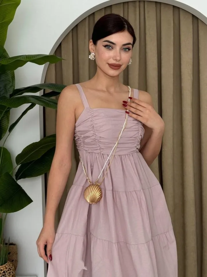 فستان مخمل ميدي بياقة نصف عالية وأكمام طويلة، ناعم وانسيابي لإطلالة راقية بدون مبالغة.